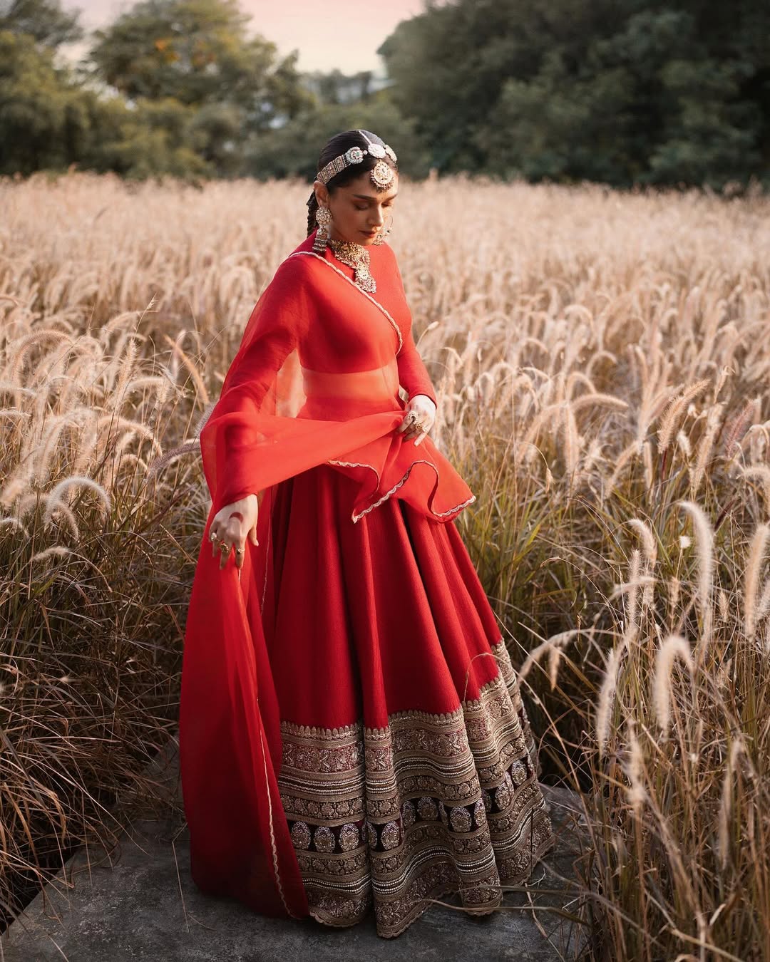 Celebrities make a million-dollar dream by creating a harmonious balance with their jewelry and accessory choices. Traditional red lehenga, heritage jewelry pieces, blouse style, dupatta, hair, make-up, and overall aesthetics can turn you into a starry bride.