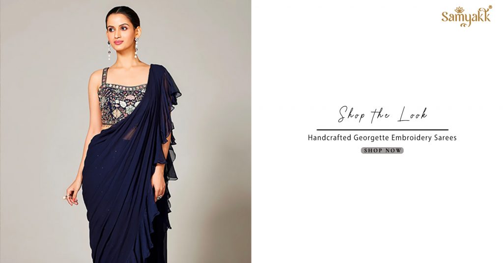 Samyakk collection caters to every desire. Explore a range of luxury georgette Sarees for those who appreciate the finer things in life, or browse our selection of affordable georgette Sarees that offer exceptional value without compromising on style. We house the latest trends in georgette Sarees, ensuring you’ll always look fashion-forward.