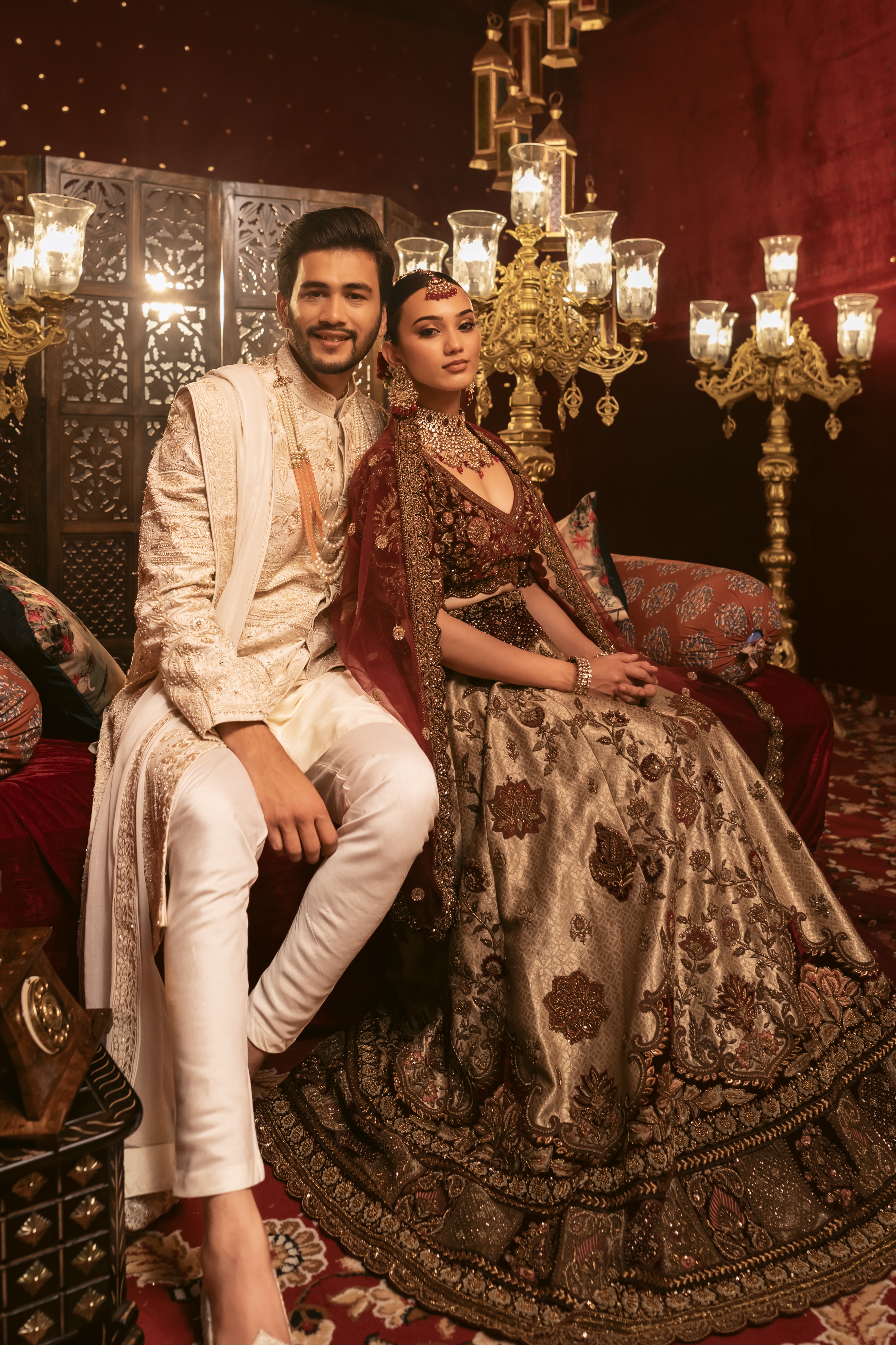 In a dance of tradition and style, they stand as one, her bridal lehenga, his sherwani, intricately spun. Each thread weaves a story of love so deep, a timeless bond, a promise to keep. The lehenga glistens with elegance and grace, while his sherwani reflects strength and a royal embrace.