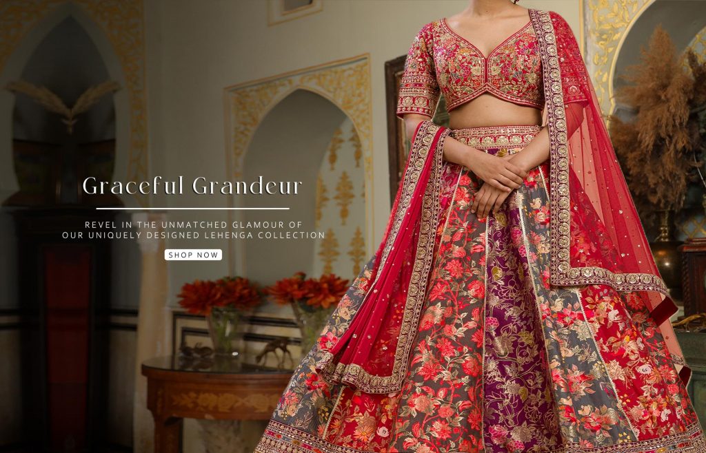 Experience the epitome of luxury with our designer festive lehengas. Each piece is meticulously crafted with exquisite detailing and premium fabrics to ensure you stand out from the crowd with effortless style.