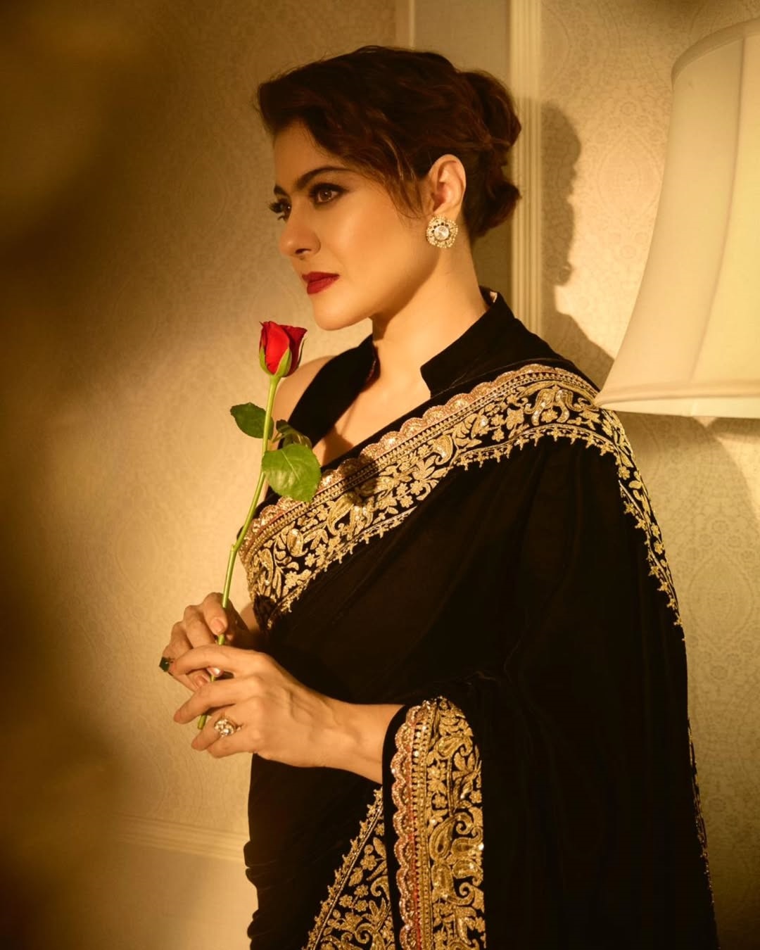Kajol has smartly embraced tradition with a modern twist. The ethnic elements like overall sequin embroidery work, the bold black hue, and the sharp styling mix up and make the outfit the best bet for reception, wedding party, and cocktail nights. Her black designer gown reflects the new-age wonder as well as vintage vibes. The fusion gown like hers can unlock your style statement and offer you unmatched elegance. The black color makes you look powerful and beautiful at the same time. With luxury fabrics, modern cuts, bold slits, and stylish necklines, you can reach a new horizon of fashion statement. You can also get your hands on the gown with hints of ruffles, 3D effects, capes, jackets, etc.