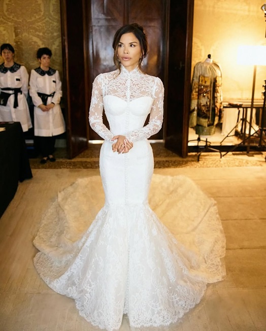 All eyes were, naturally, on the bride, and Lauren Sánchez did not disappoint. She graced the occasion in a custom-designed Dolce & Gabbana white lace and tulle gown that was nothing short of a work of art. Reportedly inspired by Sophia Loren’s iconic wedding dress in the 1958 film “Houseboat,” this masterpiece took over 900 hours of meticulous artisanal work to create. With its corseted bodice, sweetheart neckline, delicate floral lace extending to a high neck and long sleeves, and a dramatic mermaid silhouette with 180 chiffon-covered buttons down the back, it was a breath taking blend of vintage glamour and modern elegance. She’s even updated her Instagram to @laurensanchezbezos – talk about making it official!