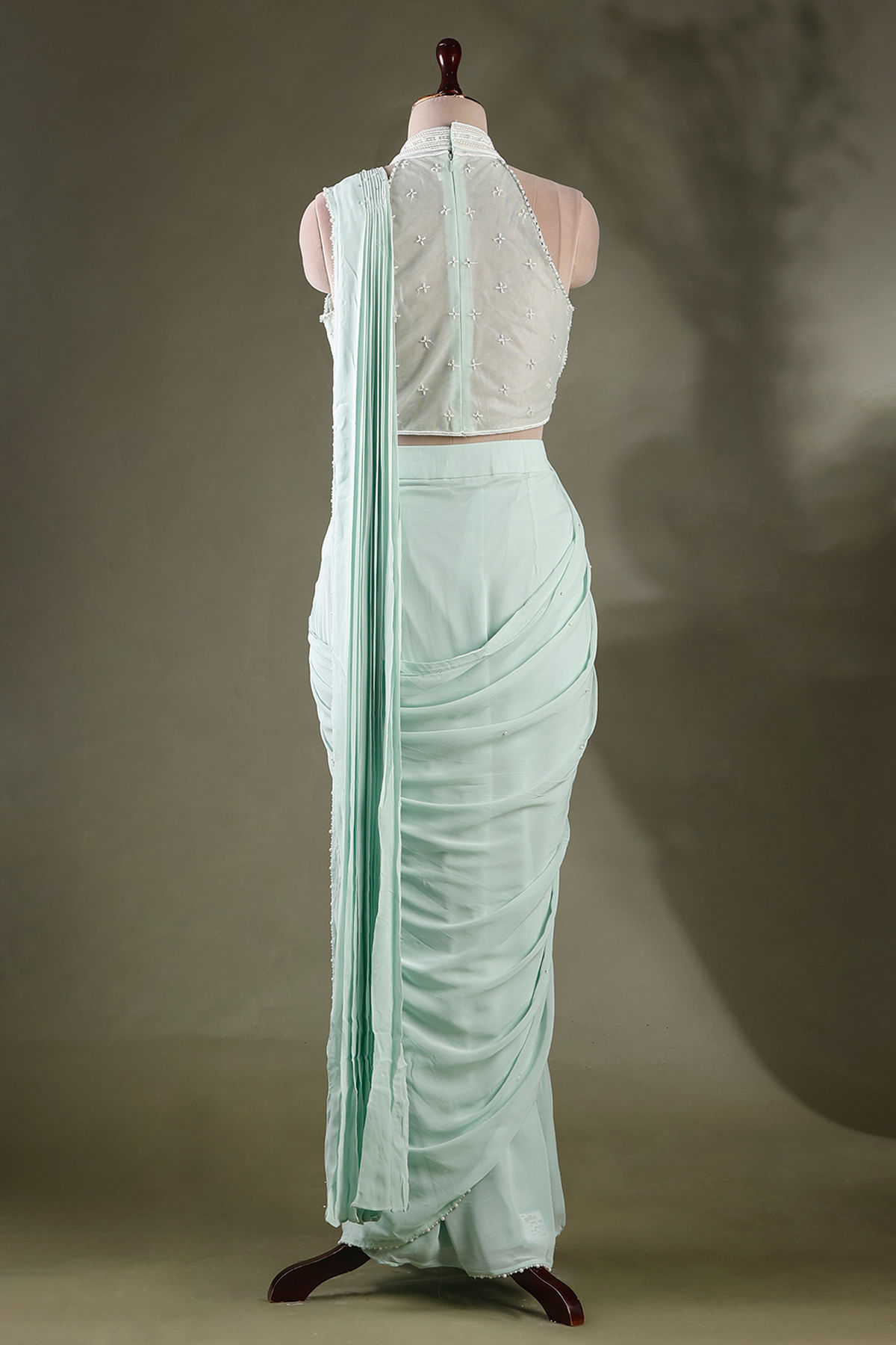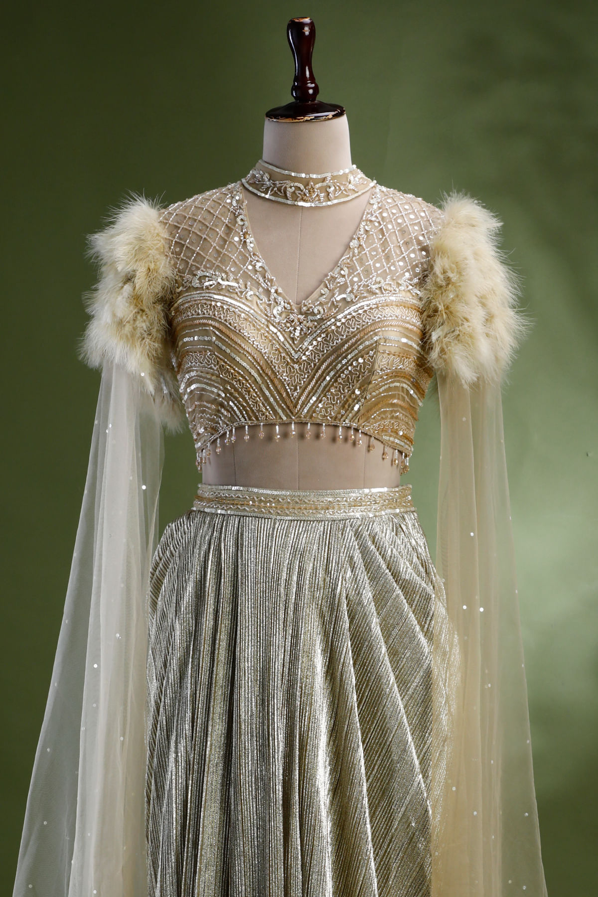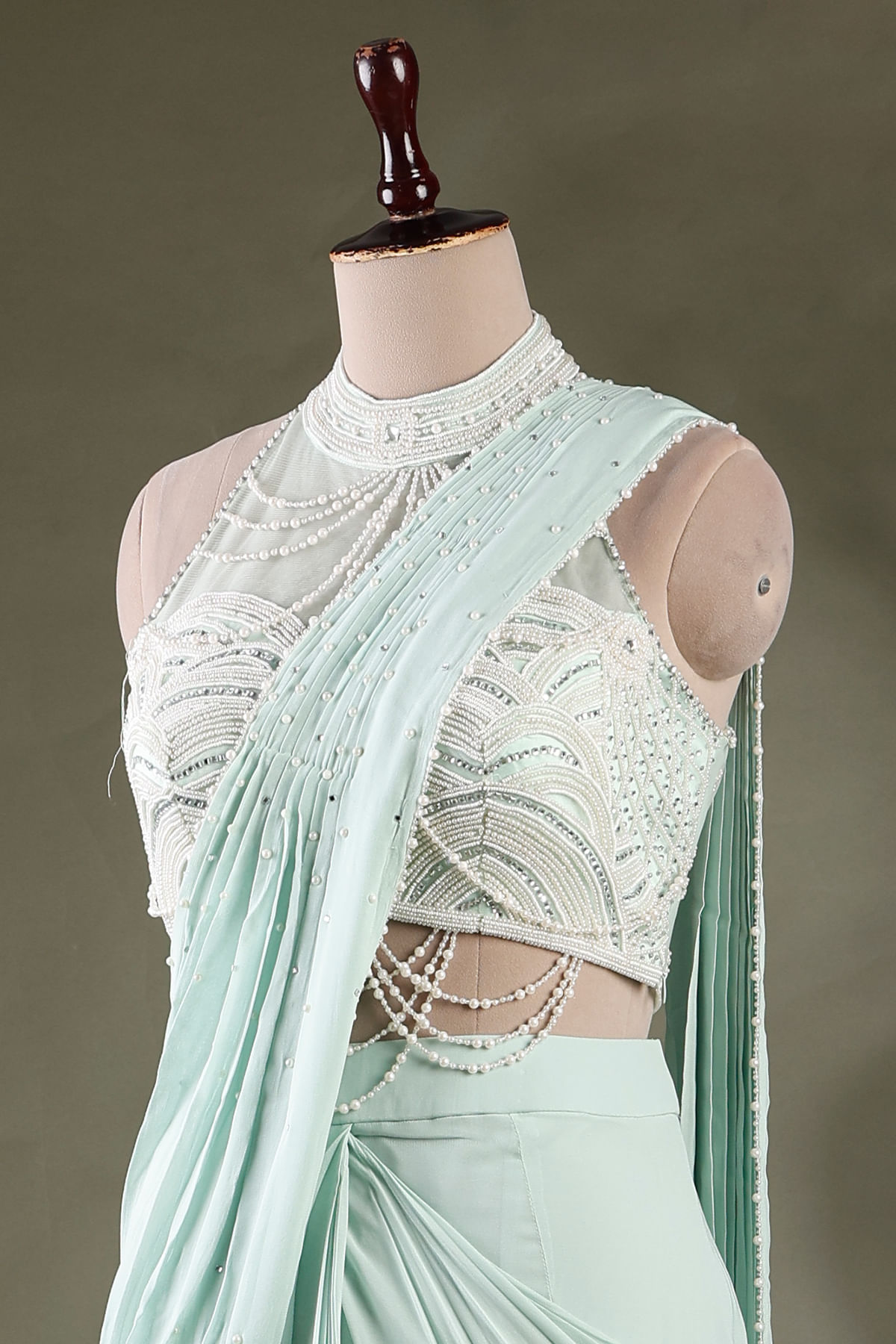 What better way to rock a party or cocktail than with a blouse that comes with a stitched-in choker? It transforms the simple blouse into an ultra-chic piece. It’s a perfect pick for Gen-Alpha brides. The style has already become a rage and is paired with lehengas and sarees at weddings and celebrations.