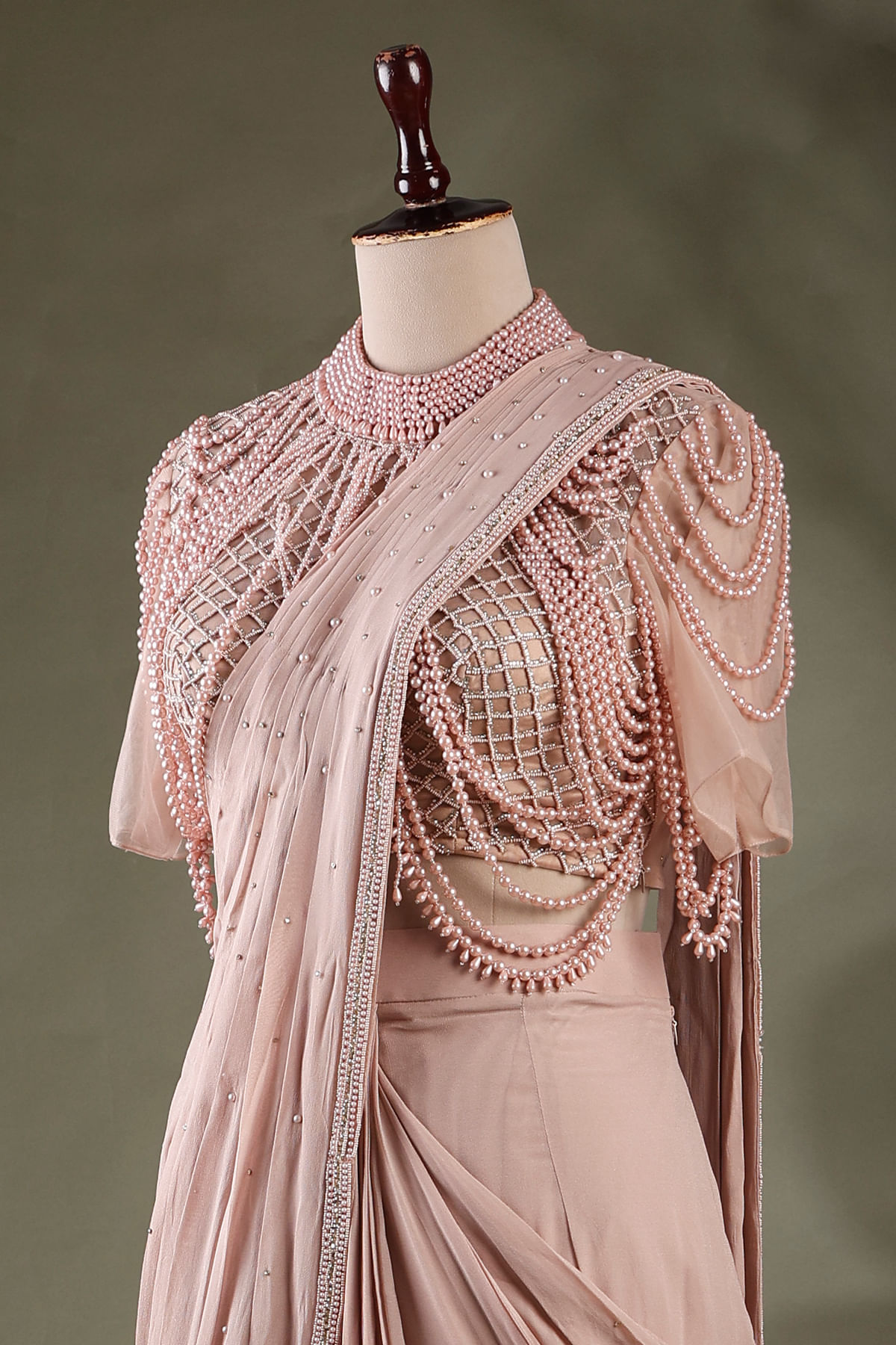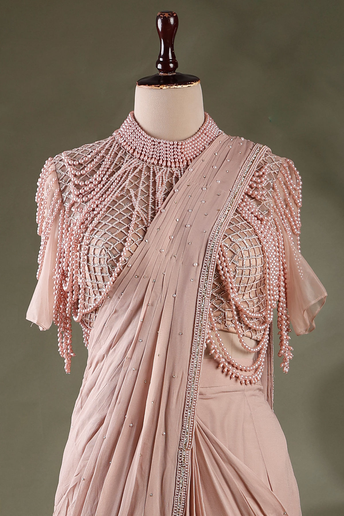 It’s time to champion the ‘rani’ look with your wedding sarees and party drapes. Pick the blouse that is adorned with pearl fringes all over, and you are just going to rock the show. The blouse with all-over pearls screams a trend that is elegant, glamorous, and oomphy.