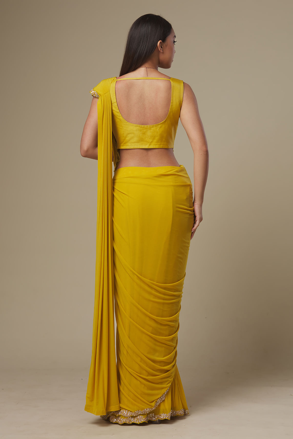 Unlike other styles, the halter neck amps up your saree in a bold and glamorous way. The halter neck is a star and a shining partner for your cocktail and Indo-Western drapes. Ready-to-wear sarees with halter necklines can stun everyone. And why just cocktail and party sarees, they can uplift the look of a silk saree or any ethnic saree in your closet. The sexy and bold neckline suits all the versions of a saree, lehenga, drape, dhoti, and skirt.