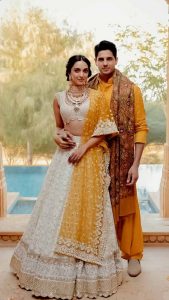 Okay, let’s talk about Kiara Advani’s Haldi look, because wow, she just nailed it. She showed up glowing in this super-bright orange lehenga by Manish Malhotra. And not like a boring orange, think that juicy tangerine shade that screams “let’s party.” The kurta? Sleeveless, deep neckline, definitely not your grandma’s version. And the sharara pants? Dripping in embroidery, all swirly gold stuff that caught the sun just right. Top it off with a matching dupatta, and the whole thing just looked so festive without trying too hard.